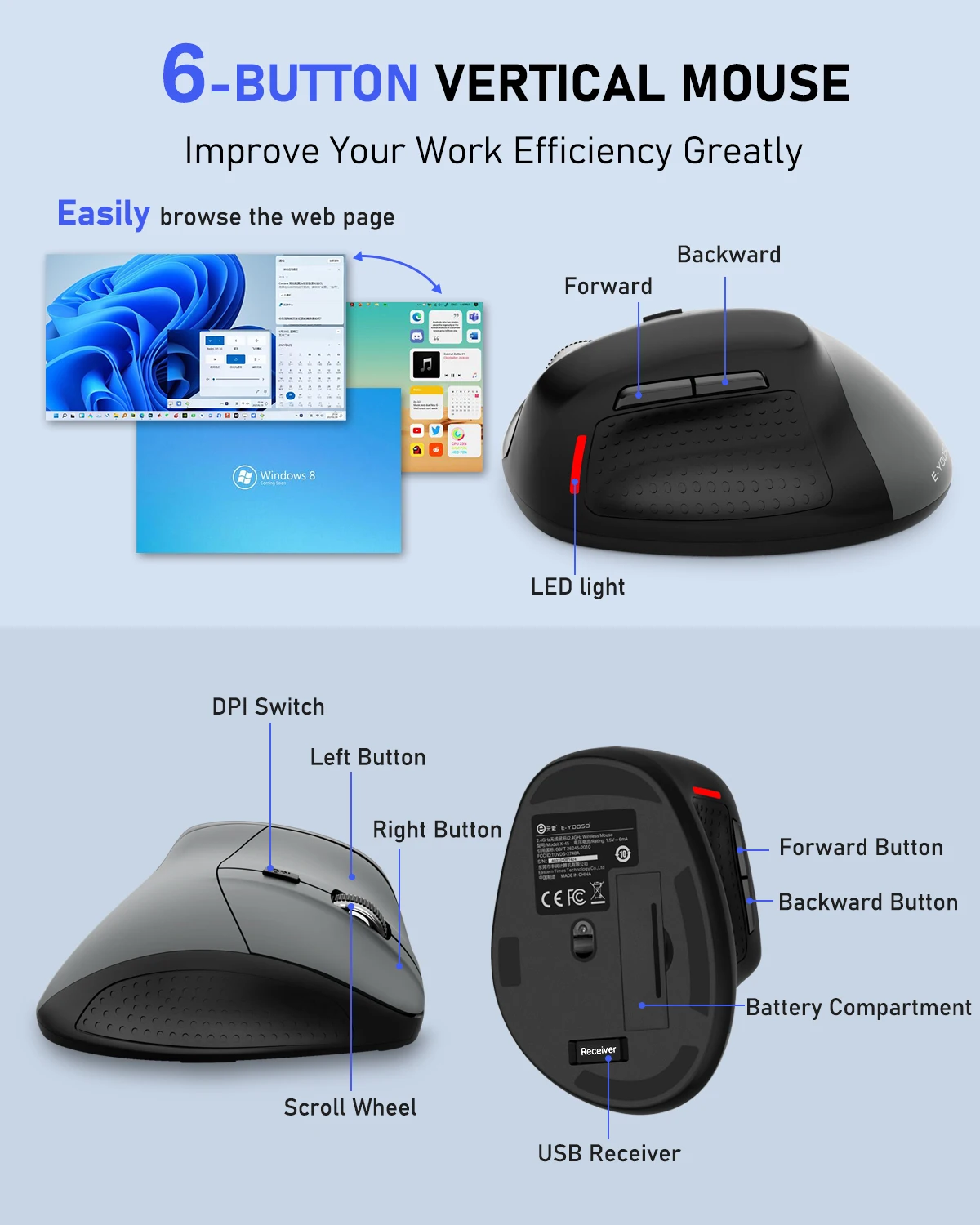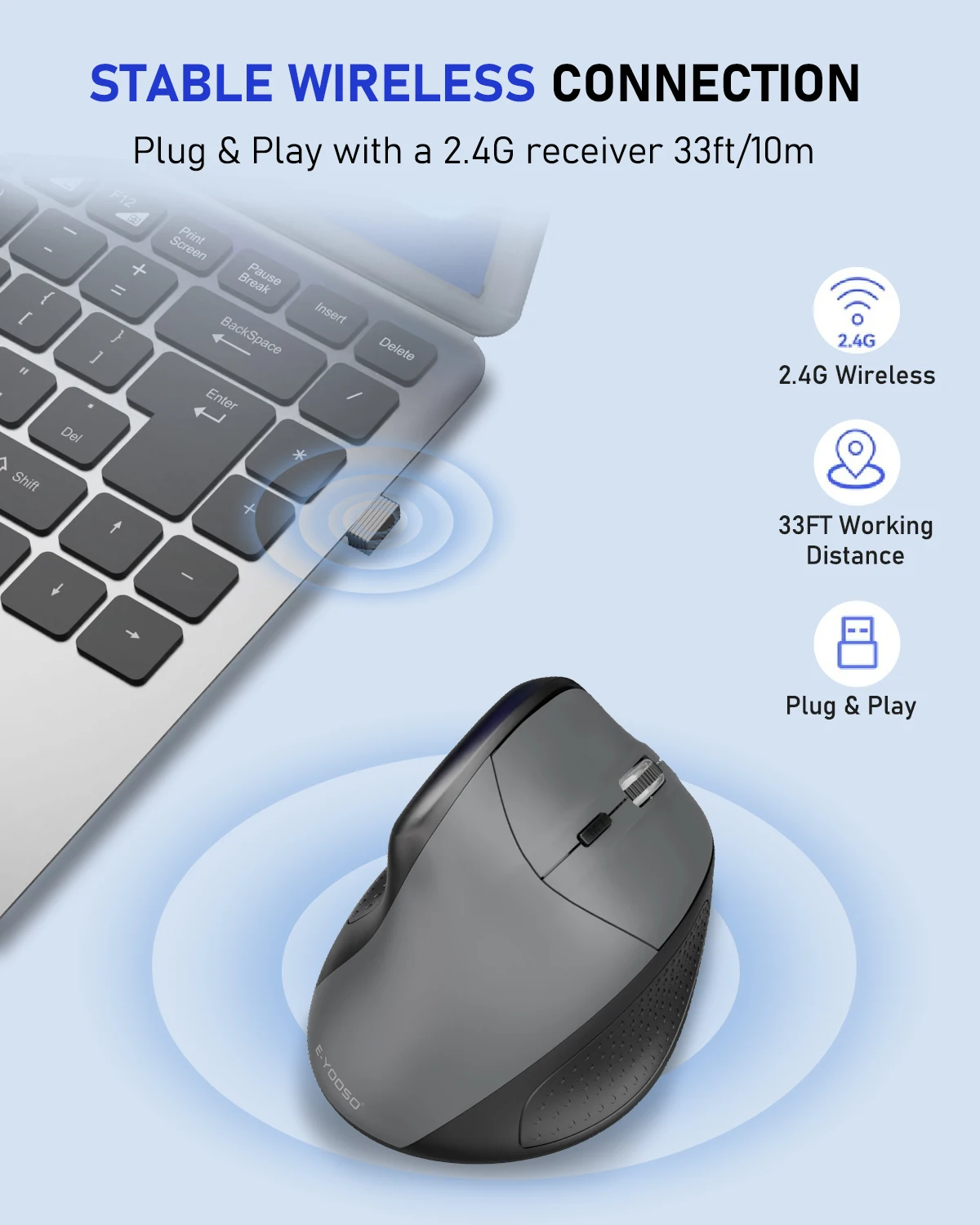E-YOOSO X-45 2.4G Wireless Mouse for Big Palms, 4800 DPI Adjustable Plug and Play Low Battery Reminder for Home, Office Gaming