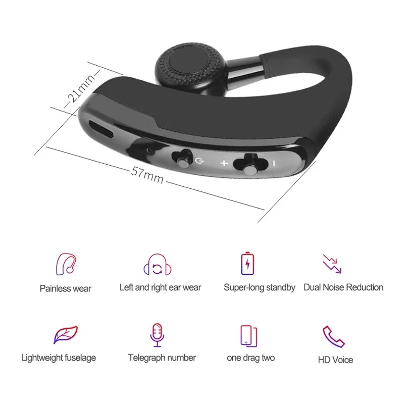 V9 Business Earphones Bluetooth 5.0 Ear Hook TWS Wireless Headphones with Mic Hands-free Call Headset In-Ear HiFI Music Headset