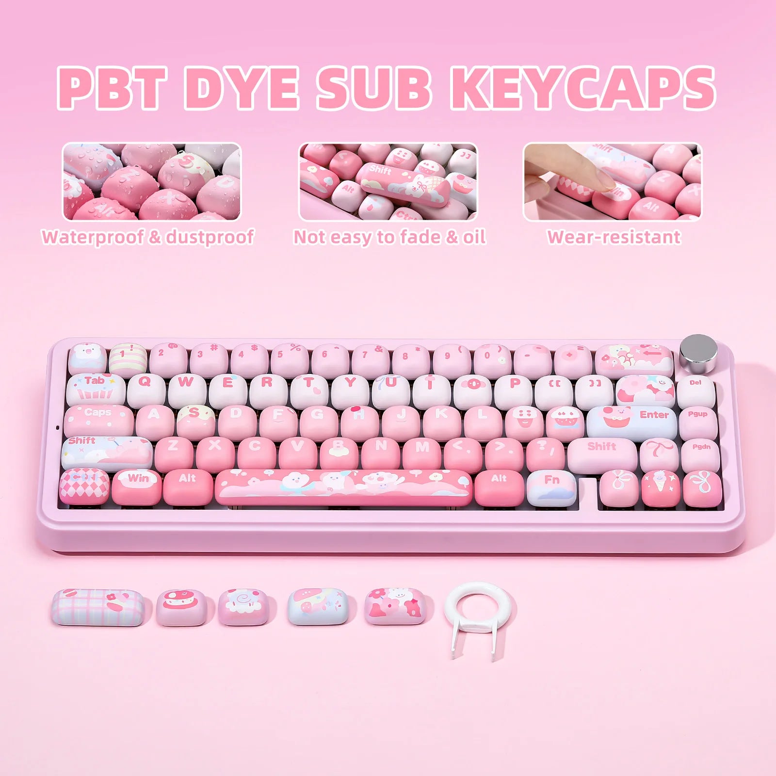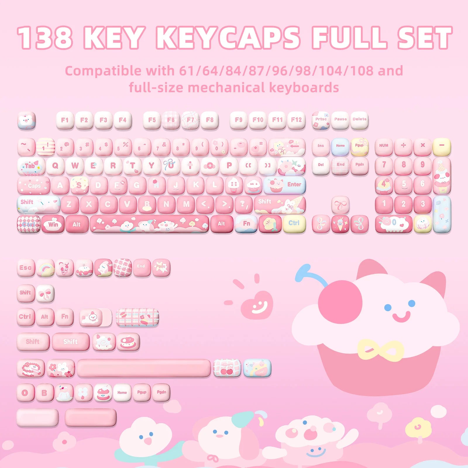 YUNZII Pink Ice Cream MOG Custom Keycaps, 138 Keys Dye Sub PBT Cute MOG Profile Keycap Set for Mechanical Gaming Keyboards