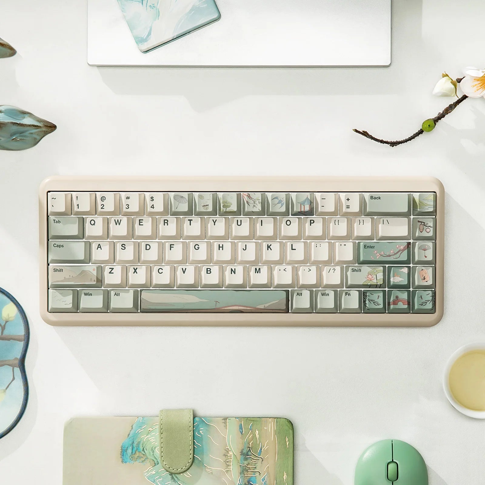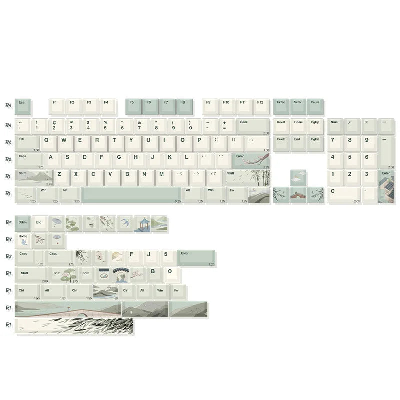 YUNZII Spring Tea 145 Full-Key Dye Sub PBT Custom Keycap with Key-Puller for Cherry Gateron MX Switch Mechanical Gaming Keyboard